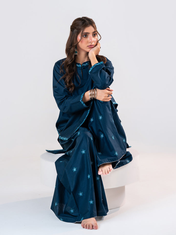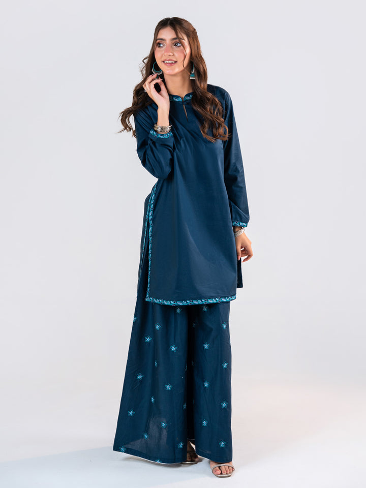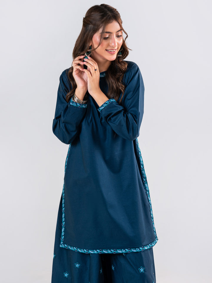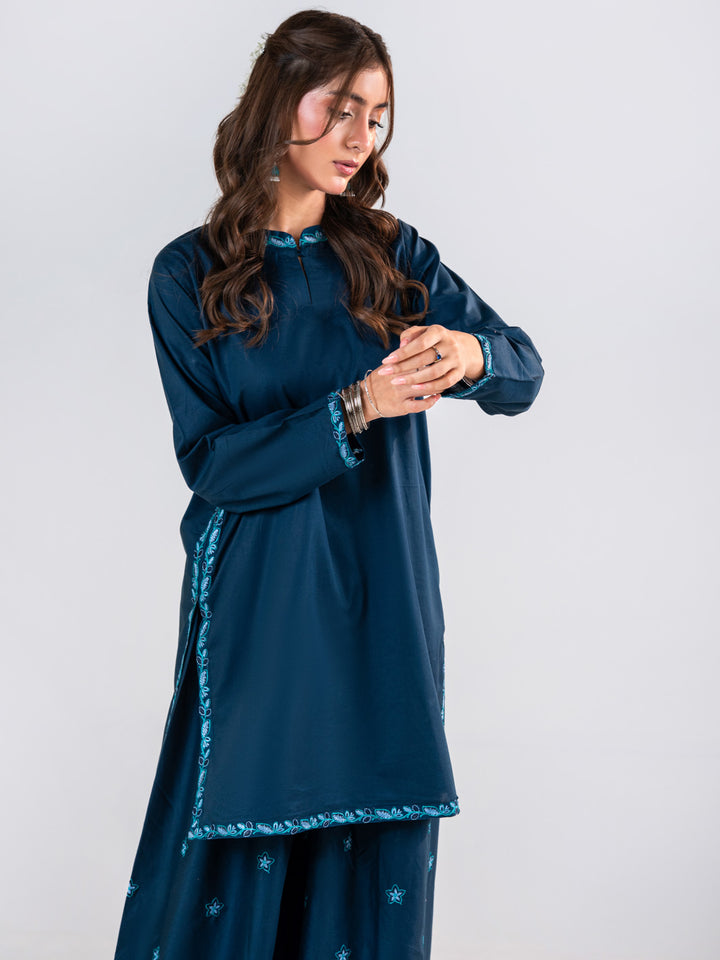 A Very Beautiful Blue 2 Piece Embroidered Set Includes Shirt & Ijaar