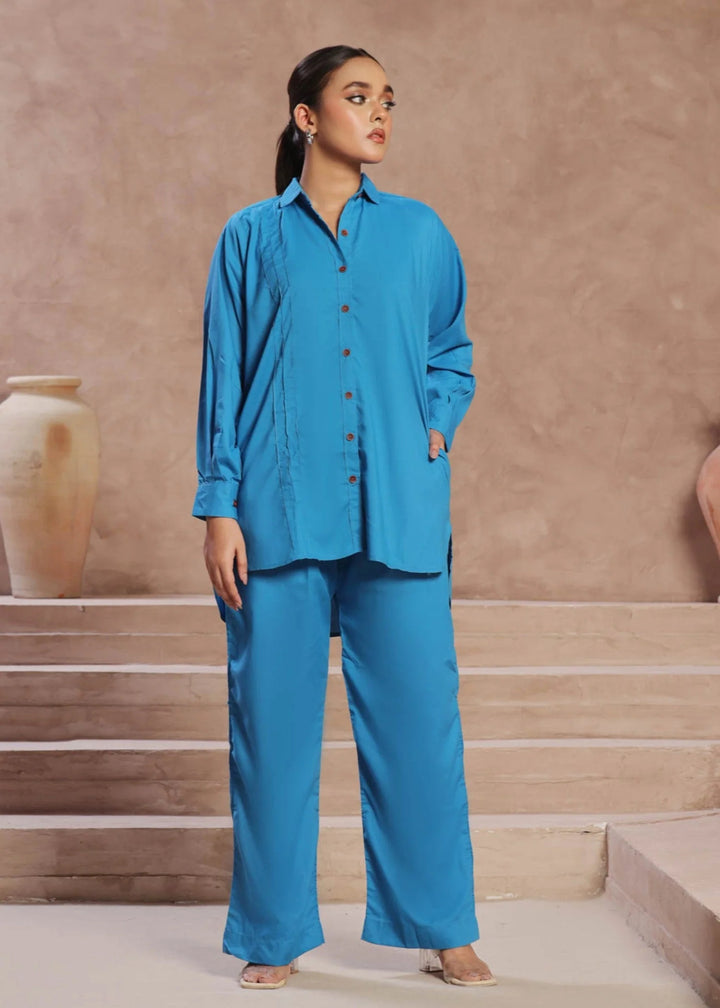 A Very Beautiful Blue Co Ord Set Includes Shirt & Straight Pant.